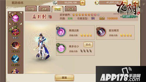 进阶加点推荐:爱别离苦点满,有两种加点方案可以选择:1、刷图团战:离多会少4点反击cd减少至10s,招架成功加怒气,该方案集怒快反击cd少。在较短时间可以更有效的打出较多伤害;2、单挑对战远程对手:离魂去影点4点虚招距离变为6米更容易接近对手并且驱散对手50怒气。