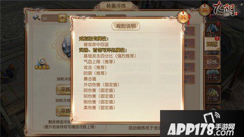 在淬炼属性的选择上,少林除了选择通用的增加气血百分比、气血上限的淬炼属性外,要着重选择增加阳伤害、增加攻击比、增加攻击强度、普攻回蓝、暴击值等,少林主要依靠大范围的输出来对敌人造成伤害,增加攻击强度和暴击值无疑于让少林的输出能力更强,普攻回蓝的效果可以让少林通过普攻快速回蓝,多释放一些实招的输出招式。