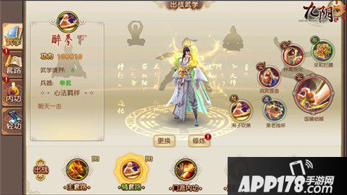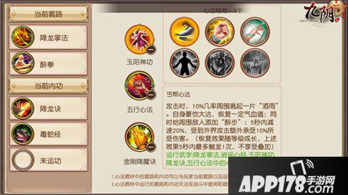 2)主武学:降龙掌法 副武学:醉拳 门派内功:降龙决 江湖内功:长生诀 心法槽:混元功、内丹术、残阳功