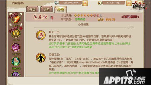门派内功:三内 降龙决(伤害加成最高)、二内 玉阳神功 (使用双古谱的情况下可以开4心法)