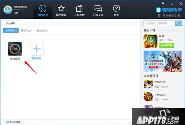 第三步,选择游戏进行下载,不要关闭右下角角标。也可以点击安装本地游戏的apk文件。