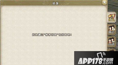 九阴真经手游好友系统中有着四个内容,分别是恩怨、最近、申请、推荐,其中恩怨代表的就是自己自己的好友,而最近代表的是最近联系的好友。申请指的时候待审核的好友,推荐就是系统推荐的好友,玩家如果想要快速拥有好友,那么就选择系统推荐来和更多的玩家成为好友吧。