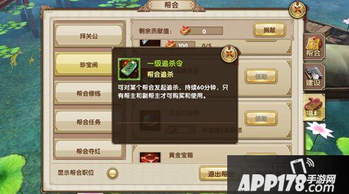 1.帮主和副帮主可以在帮会商店中购买帮会追杀令