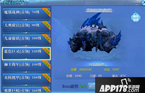 110级BOSS:蓝色巨灵,位于迷失沙漠,掉落4阶(1000级)装备。