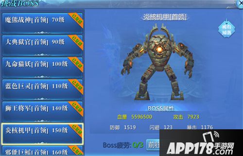 150级BOSS:炎核机甲,位于迷失沙漠,掉落5阶(150级)装备。