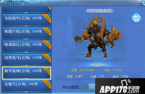 250级BOSS:修罗战神,位于古戈壁,掉落7阶(250级)装备。