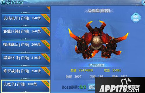 300级BOSS:炎魔皇,位于冥地之渊,掉落8阶(300级)装备。