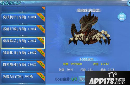 200级BOSS:噬魂蛛后,位于夜沼密道,掉落6阶(200级)装备。