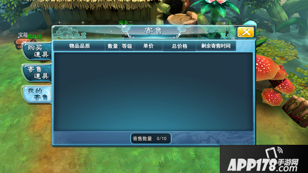 寄售列表是为了方便玩家随时查看自己寄售物品信息的选项,在列表中显示了玩家本人已经寄售的在售道具列表,同时寄售数量上限为10个。物品列表分别展示出物品品质、数量、等级、单价、总价格、剩余寄售时间等类别信息,这些类别信息可以通过点击来进行升序或降序排列。