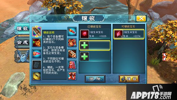 宝石是提升装备的重要方式,无论是否穿上装备,我们都可以在每个部位打上宝石。此外,在没有穿装备的情况下,每个部位装备的宝石也可激活效果,且宝石可随时镶嵌摘取。宝石又分攻击宝石和防御宝石之分,攻击宝石有物攻、法攻、命中、暴击属性等,防御宝石生命、物防、法防、闪避和爆抗属性等。