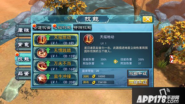 通过升级技能可以直接提升战力,升级技能分为普通攻击和基础技能两部分,这两部分升级都需要一定量的金株,而金株在活动、福利、剧情副本内都可以获得。