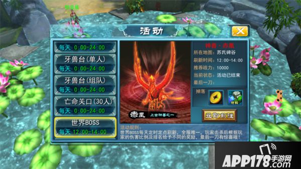 每日中午12点起至下午2点,世界Boss都会在苏氏碑谷地图内准时出现。玩家们在战的尽兴的同时,击杀Boss后也会有丰厚金铢与材料的奖励。在活动期间,玩家们需要进入活动菜单,在世界Boss选项内点击“立即前往”按钮即可参与活动。需要注意的是,点击“立即前往”按钮后系统会将玩家传送至苏氏碑谷地图传送点,但世界Boss一般处于地图内的随机区域,因此玩家们需要耐心的寻找你们的猎物~