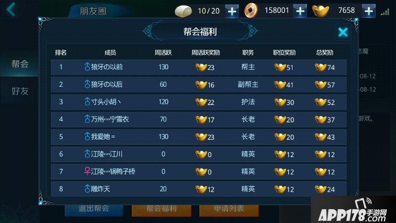 6.帮会福利加入帮派之后,会根据每周的活跃度去发放元宝的奖励,在帮派里,还会按照帮派里的职位发放元宝。发放元宝的数量和帮派等级,建筑,人数这些也有关系的。