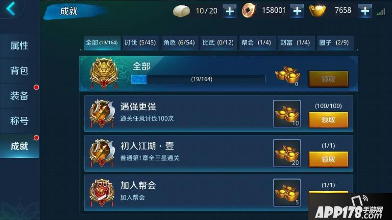 3.成就在首页点击角色,可以查看到最下面有一个成就系统,你可以根据任务的条件去完成,也可以不刻意去做这些任务,因为达到条件之后,任务就会自动完成了,到时候直接领取元宝奖励就好。