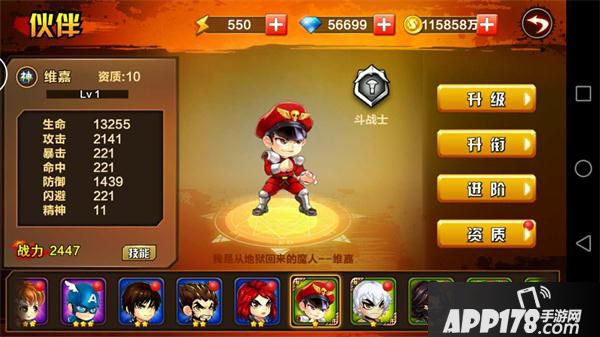 小伙伴分为神将、攻击型、坦克型、辅助型4类;
