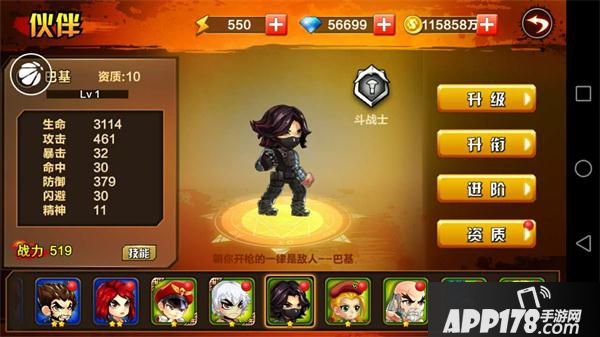 小伙伴分为神将、攻击型、坦克型、辅助型4类;