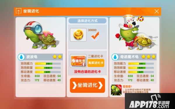 玩家可以通过金币或者购买经验卡使坐骑升级,当坐骑升到一定等级后玩家可以使其进化,获得更拉风造型、更强属性、更多技能。