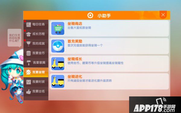玩家可以通过完成新手引导获得一只免费的坐骑“懒惰龟”,还可以在坐骑商店购买其他酷炫拉风的坐骑。