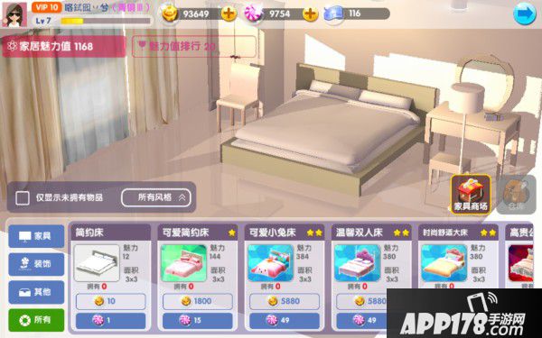 在家具商场,通过金币、糖果币或家具券购买家具。