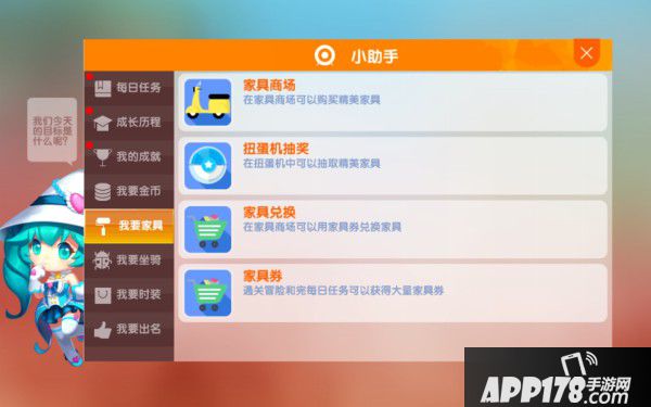 (家具券可以通过冒险模式、每日任务和各种活动获得。)