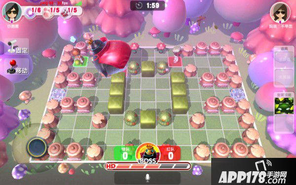 《泡泡大乱斗》的BOSS战玩法与其他玩法略有不同,其他玩法都是需要玩家去攻击对手,而在BOSS大战中,玩家们则需要去攻击地图中的BOSS,BOSS死亡时,攻击次数多的一方获胜!