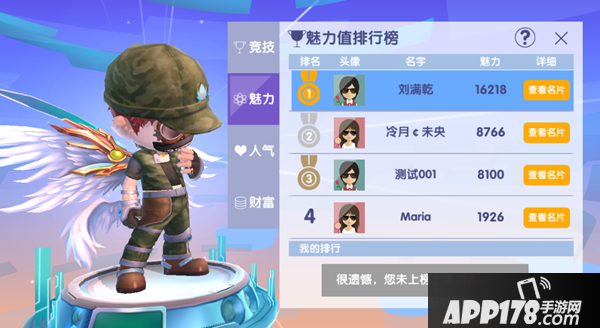 商城出手的时装与饰品都有相应的魅力值,购买并穿戴后会根据玩家当前身上的总魅力值进行排名,魅力值越高排名越靠前。