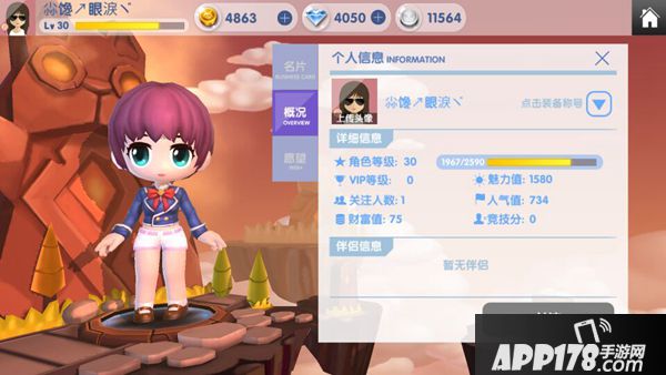 概况:可以看到很多详细的个人资料哦,比如角色等级、财富值、竞技风、魅力值等等!