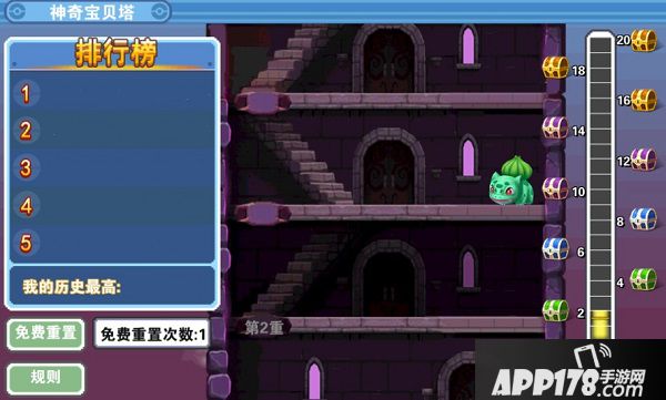 游戏中的爬塔玩法,玩家通过连续爬塔闯关来获得装备奖励。道具掉落主要以各级宝石、宝石碎片为主,随着爬塔层数的提高,奖励也会更丰厚,还有几率会获得高级装备。每位玩家每天有一次免费重置的机会,提升vip等级,每天可额外购买重置的机会。