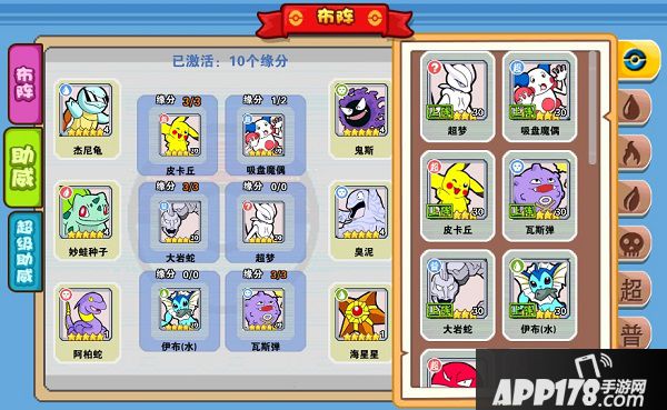 如果我在上阵和助威中都无法凑齐满缘分的宠物该怎么办呢?不用担心,还有一个“超级助威”的功能,在原助威的基础上再次增加一套助威阵容,仍然可以上阵6只宠物,可与布阵和助威阵容共享,同时超级助威的属性加成还可以升阶,每升一阶会增加额外的属性值,助威属性会平均分摊给6只上阵的宠物。