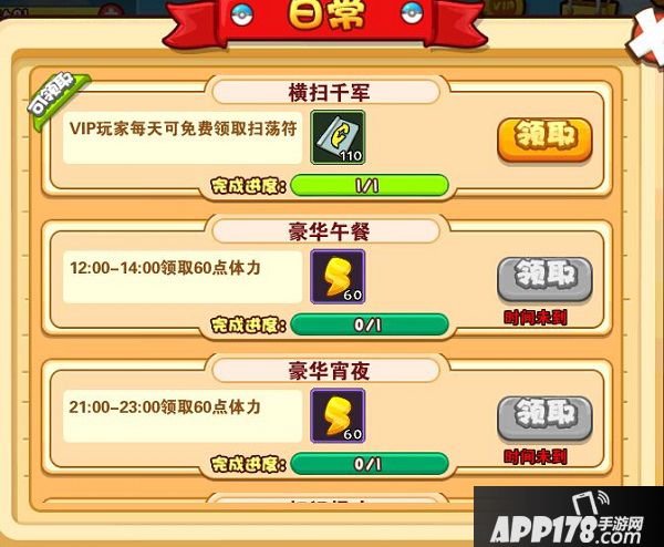日常任务系统,进入游戏主界面,点击左侧的“日常”按钮即可进入按照规定的条件达成任务即可领取相应奖励,奖励包括经验、金币、扫荡卡等。每个日常任务每天只可完成一次,完成后,此项任务不再置顶显示,次日将再次刷新。