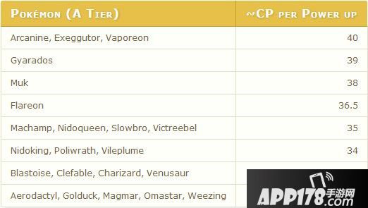 风速狗 40 椰蛋树 40 暴鲤龙 39 臭臭泥 38 火精灵36.5