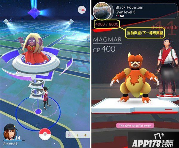 道馆被占领后的样子;在这里可以看到道馆的当前声望和下一等级声望