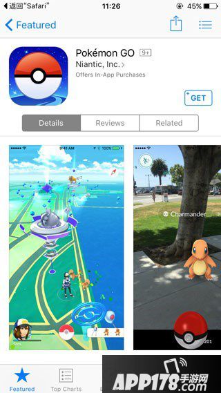 网页会直接将你的苹果商店切换为Apple账户所在区域的店面,接着你要做的就是点开商店首页推荐位那颗精灵球,下载游戏!