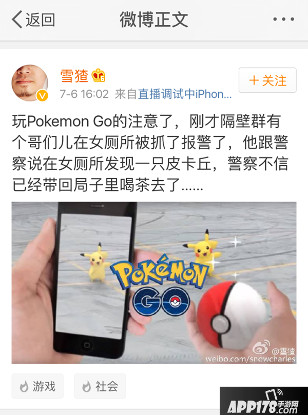 像之前社交圈里传得很广的为了抓小精灵闯进女厕所被警察带走的,还有胆敢妄想进军事禁区抓精灵的……这不叫做热衷游戏,而是脑子进水。