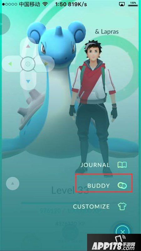 在玩家资料界面,点击右下角选项,可以看到第二个“BUDDY”选项。这就是Poekmon go新的伙伴系统了。点击之后就可以选一个自己喜欢的精灵做伙伴了。