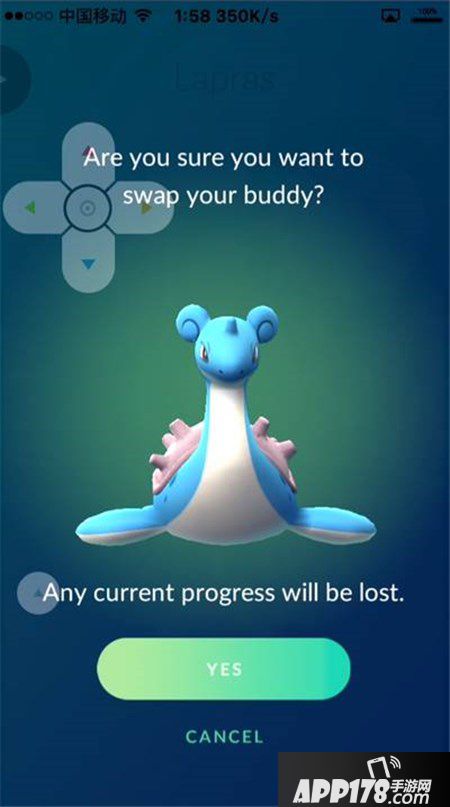 但要注意的是,如果你切换了伙伴,这个伙伴之前陪你走过了里程数都会清零。点击“yes”以后就会回到精灵背包,然后你选择一只新的就可以替换当前小伙伴了!