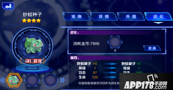 精灵进化需要消耗大量金币,每次进化一级需要消耗同星级精灵一只。