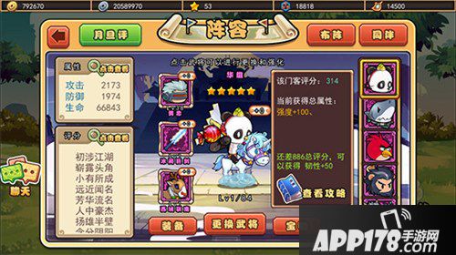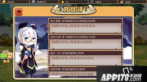 门客系统是由副将、武器和坐骑组成,这三者的等级星级直接影响门客的评分。玩家也只需要按常规方式对副将、武器和坐骑进行升级进阶等。值得一提的是,除了副将评分总和达到一定数值有额外奖励,所有武备品质达到一定星级时还能再额外获得奖励。