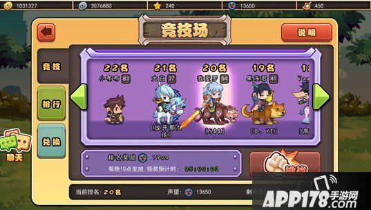 2每天晚上22:00会根据竞技场排名发放奖励,排名越靠前获得的奖励越多.