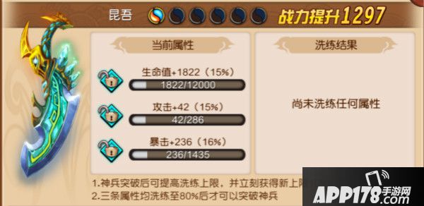 ②增加神兵洗炼属性上限
