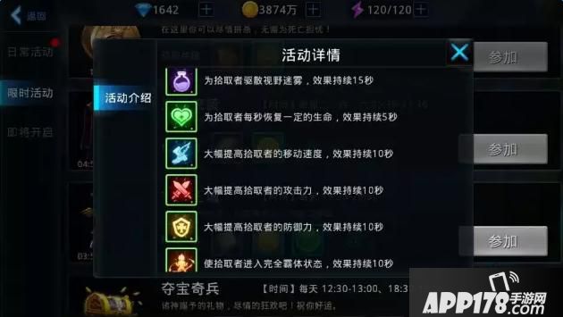此外,这个活动还有人类专属BUFF的存在,地图上会随机出现各种BUFF,拾取后人类的属性会得到大幅加强,即使单人属性依旧不如恶魔,但是利用得当,自保无忧。