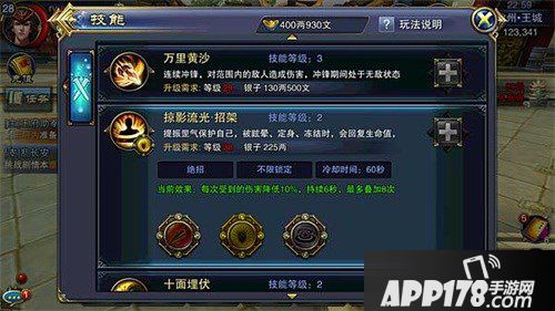 掠影流光:提振罡气,增强攻击,期间共计必定破招,持续6秒
