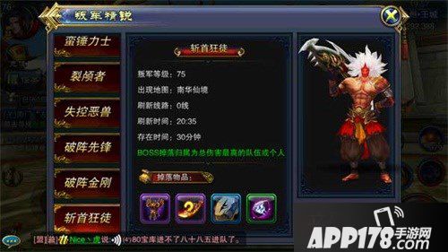 目前,叛军精锐玩法正式迎来全新大魔头——75级BOSS“斩首狂徒“的登场。这名新增的75级难度BOSS,所在地图为南华仙境,每天20点35分钟刷新登场,存在时间为30分钟,被击杀后BOSS自动消失。