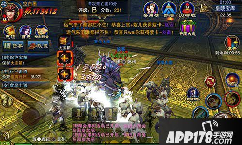 皇陵宝库主要任务是保护宝箱,在指定的时间保护宝箱不被破坏,在皇陵宝库中不同于皇陵密室和皇陵偏殿,玩家不止要对付小僵尸和老粽子,还会多出精英级别的复生大将,甚至还有BOSS等级的殇魔徐福,但是我们并不需要将其杀死,只要拖到时间结束即可获得奖励,但将其杀死可以获得更高的奖励。