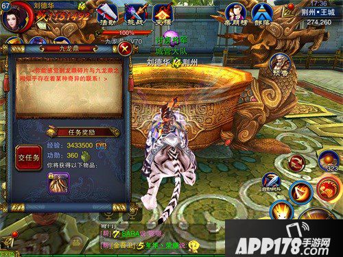 来到敌国的九龙鼎边,就开始我们的任务吧,碎片一共分为五个等级,分别是白、蓝、黄、绿、紫。不同品质的碎片最后的奖励不同,小编还是推荐玩家们一直挖到紫色的碎片位置。
