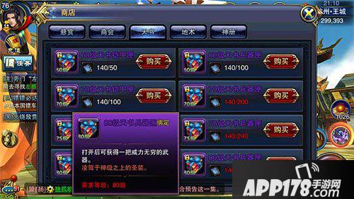 通过这些方式我们就能获得大量的天书道具,从而兑换自己心仪的神器,为日后的战争武装得更彻底,真正做到神器在手,天下我有。