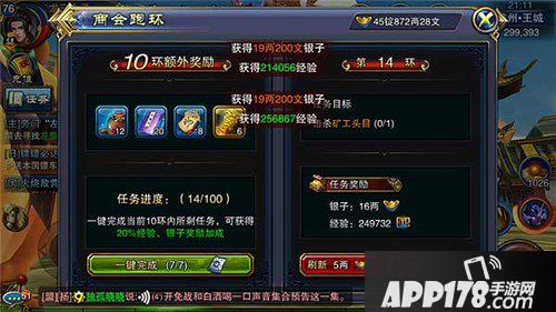 延续上文提及的使用商会令兑换铠甲,我们就需要完成跑环任务才能获得关键道具商会令。该跑环任务相对简单,任务随着环数的增加也会变得越来越难,经验和银两奖励也会越来越多。前五十环的任务大多以寻找物品或者巡视领地为主,我们可以轻松挂机完成任务,五十环之后就开始杀一些高等级怪物。