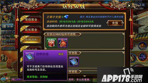 (2)通过充值返利。在每个新区刚开启后都会有一个充值返利的活动,当我们数额达到一定就可以领取奖励,从而获得大量的天书;