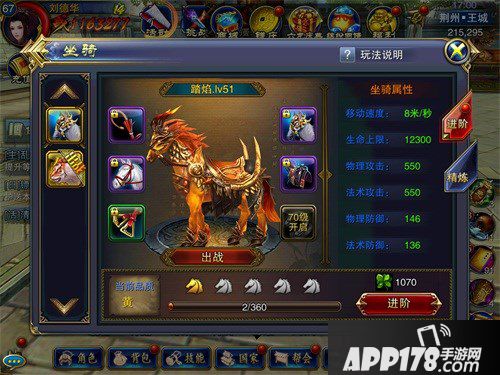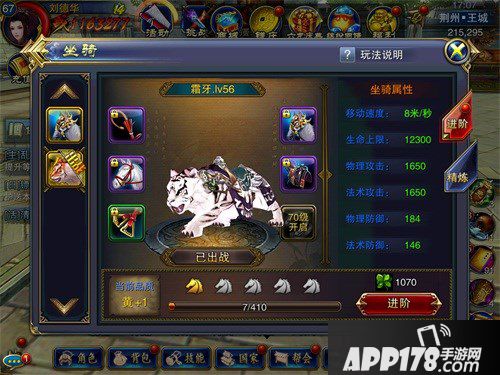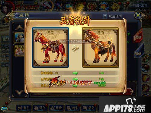 每个玩家都会有一个初始坐骑,可能一些玩家还会再游戏中收集一些独特的坐骑。不过,哪怕是初始坐骑,强化过后的属性加成也是强的。坐骑可以给我们带来移动速度上的加成,让我们在做任务的时候更加快捷,不仅如此,在生命上限、物理攻击、法术攻击、物理防御、法术防御上也能够给我们带来高额的属性加成。这些所有的属性都需要坐骑的升级,也就是强化,强化后的坐骑不仅体现在属性加成上,连外观都可以变得更帅。