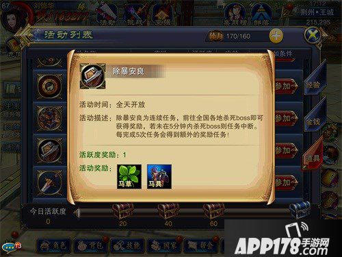 游戏中的马草除了商城购买之外,性价比最高的就是做除暴安良任务了。任务全天开放,玩家们不仅可以获得马草和马具,还可以在任务中获得额外的奖励及高额经验。整个任务流程非常简单,在完成261.290许诸处领取任务即可。任务目标主要是清楚黄巾余孽,玩家们不要过于担心自己的等级,任务会根据玩家的等级刷出任务怪,总之非常简单就对了。